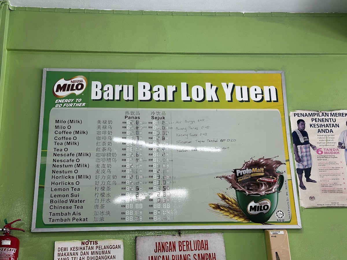 Kedai Kopi Baru Bar Lok Yuen 新巴樂园咖啡茶室 Menu